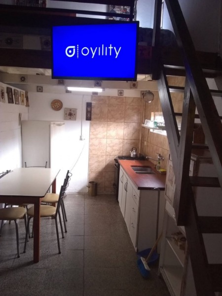 2 ) Departamento de 2 ambientes. Cocina comedor, dormitorio, baño y patio delantero.