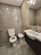 Toilette con vanitory colgante y espacio de guardado en bajo escalera.
